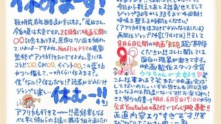 ワンピース約1ヶ月の休載!作者からのメッセージ&実写ドラマに映画にCM、イベント!今年の今後情報!